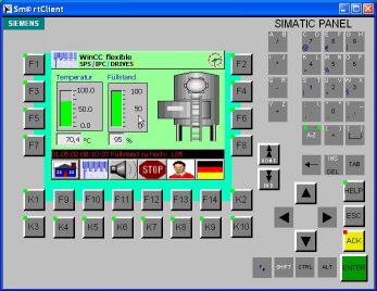 | This program allows enhanced functionality for "remote maintenance over the Internet Explorer". The program is available in the support folder of your installation DVD and can be run as a separate application on your computer. In addition to the screen contents, this application also displays the layout of the HMI system requiring maintenance. The advantage here is the additional access to the locally available softkeys and function keys of the SIMATIC Panel.
